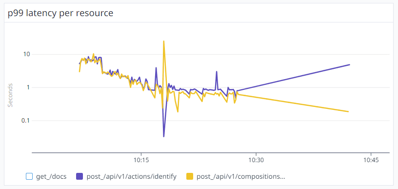 We noticed (see the diagrams below) spikes in latency between 10 to 30 seconds for the aforementioned APIs during the last two weeks of August.Even worse, some requests were dropped because of the 30-second web server timeout. Overall, the P90 latency was over 2 seconds. This was alarming, especially considering that the team had designed the system to meet a maximum latency performance metric of under 1 second.